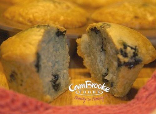 • In a medium bowl mix all ingredients except blueberries until well blended.